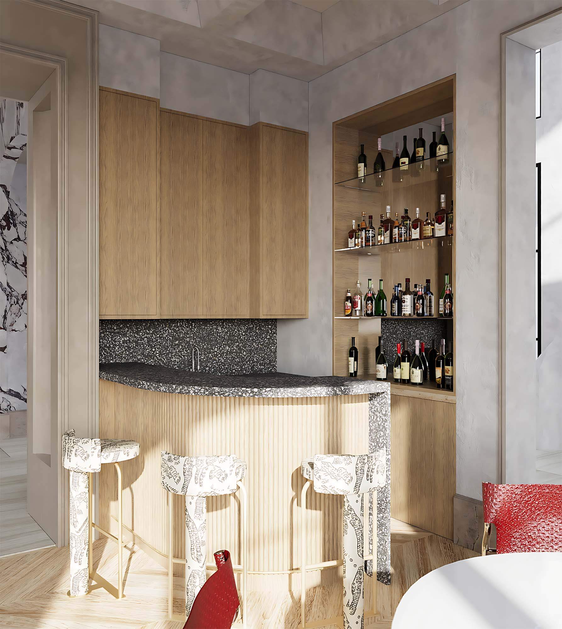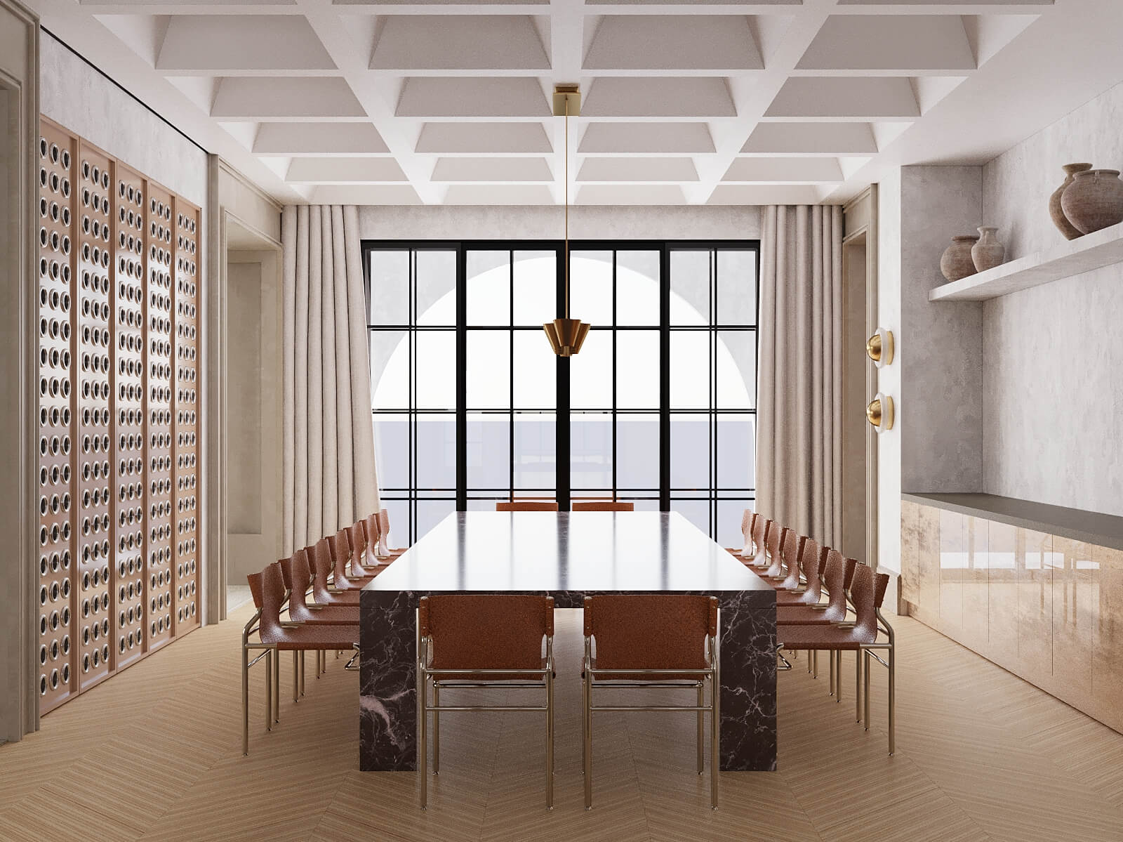 Sustainability continues to be a leading trend in interior design for 2024 and 2025. Emphasis is placed on using natural or innovative artificial materials that are durable, a natural color palette, and comfortable lighting. Popular materials include wood (in the form of slatted, textured, or flat panels, beams, planks), concrete, metal, natural stone, mats, and reed wallpapers, as well as authentic frescoes or their skillful imitations.