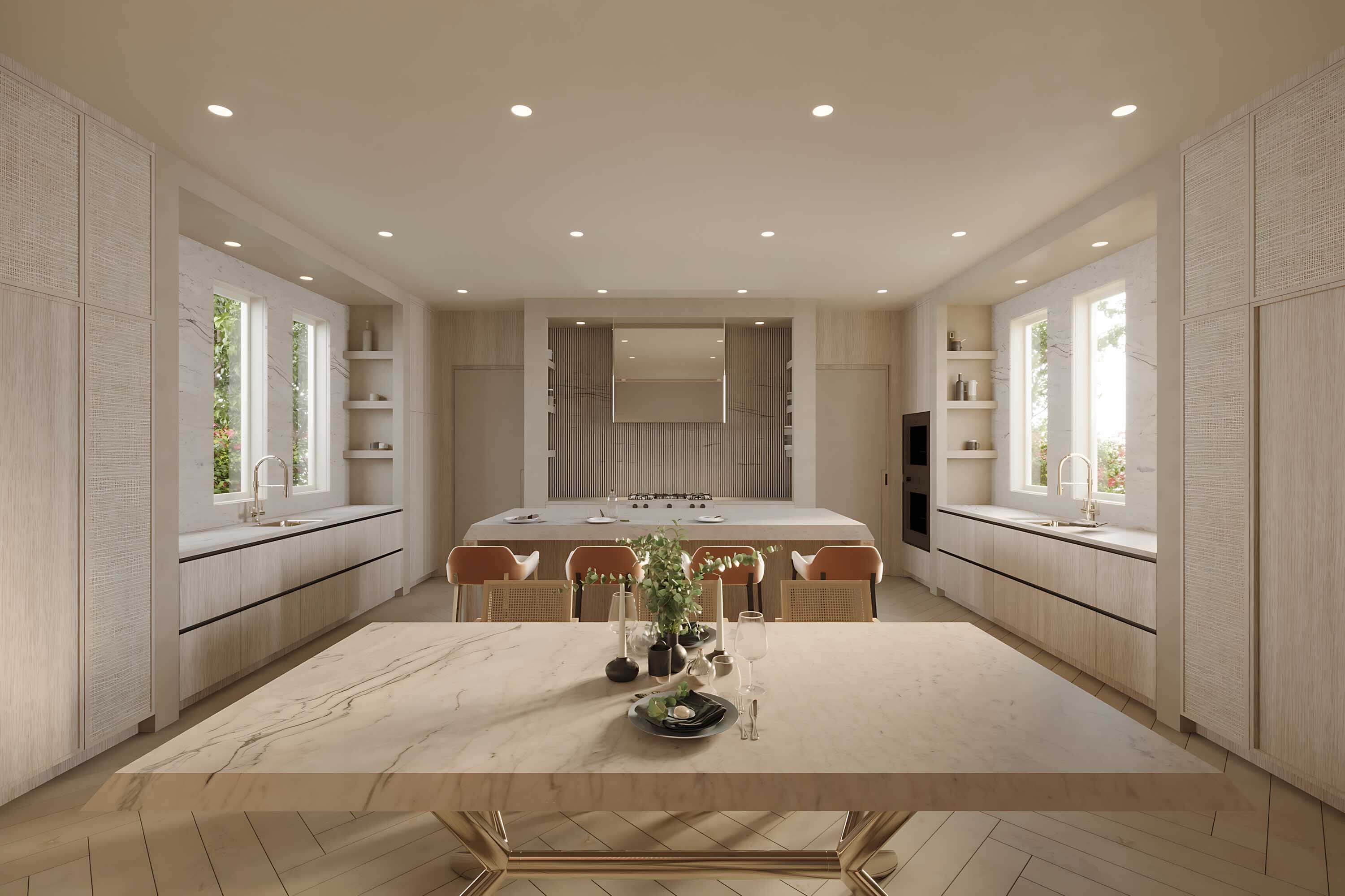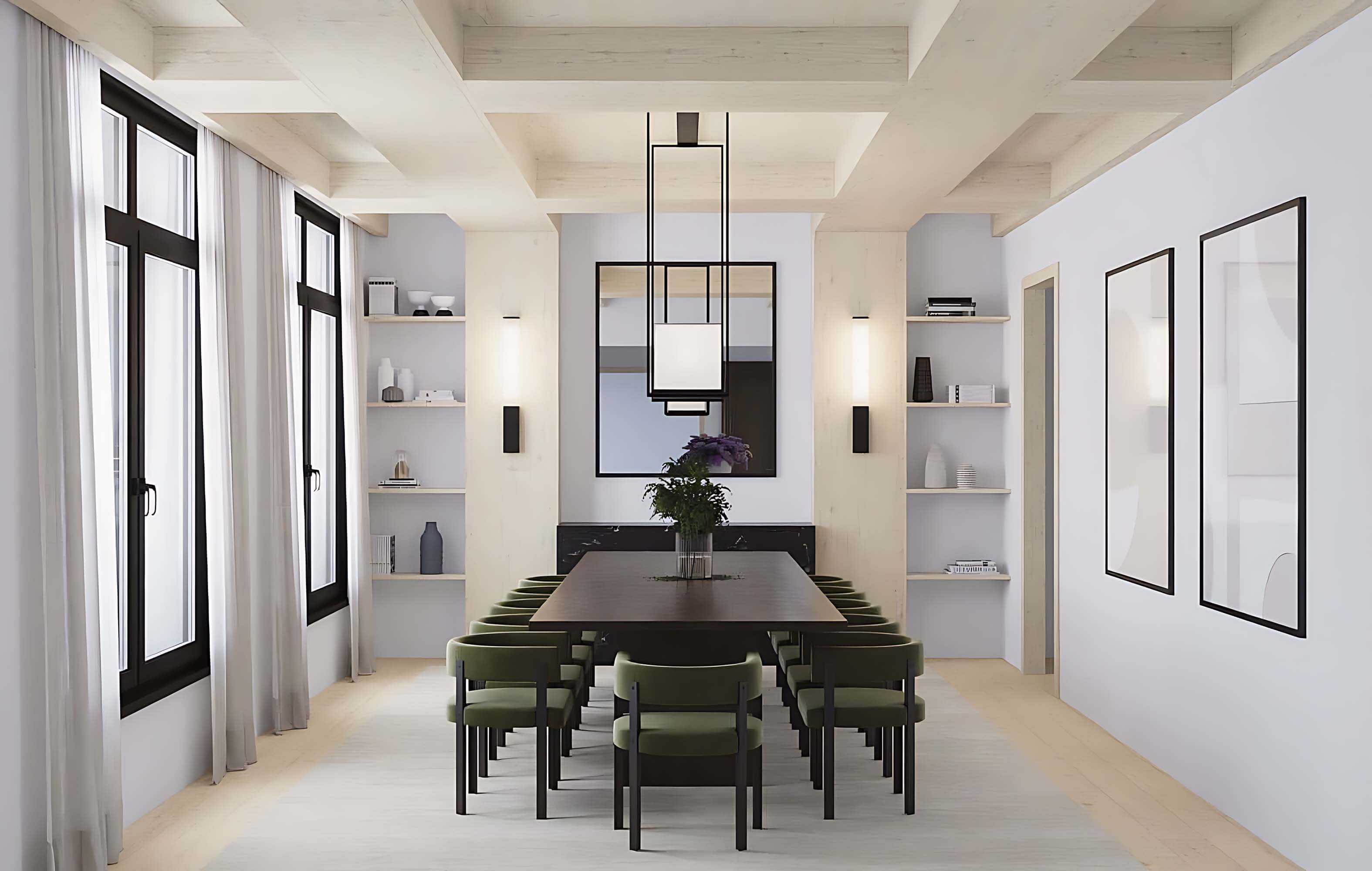 Minimalism remains a top interior design style for 2024-2025, but this season it is softened by incorporating elements from other styles. The 2025 version of minimalism features warm beige tones, light wood, and plenty of textiles. Soft minimalism is complemented by sleek furniture with strict geometric shapes and designer interior items like a bright chair, an original coffee or side table, a floor lamp, and bar stools upholstered in vibrant green fabric.