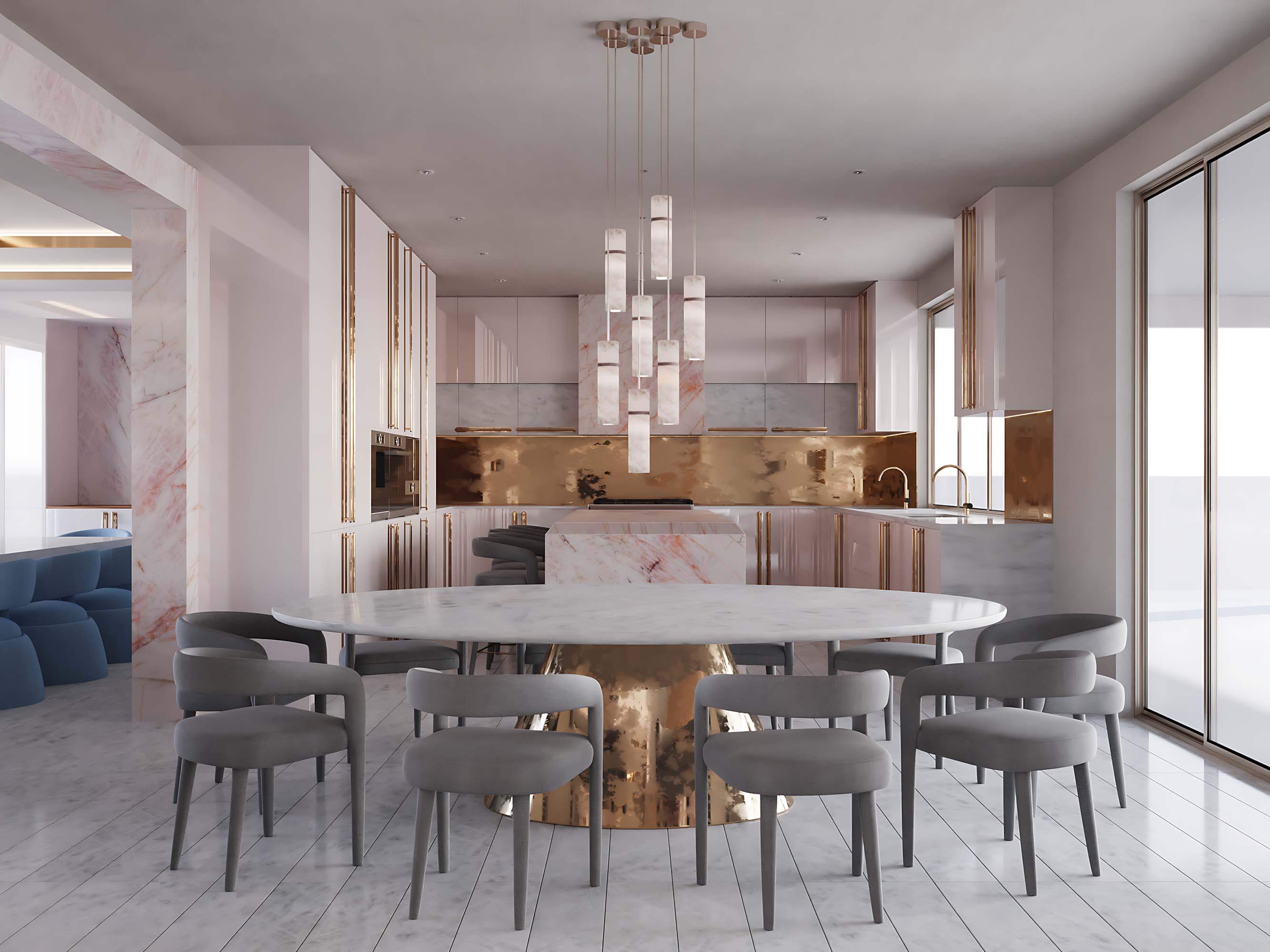 Recent years have seen interiors trend towards gray and muted tones. Soft shades of pink, along with neutral beige and gray, are now among the top five most fashionable colors in clothing and interior design. They pair well with creamy, milky, golden, and green tones. This season, pink can be found in chairs and stools, countertops, designer kitchen appliances, curtains, and pillows. It is essential to choose a shade that is pleasant and unobtrusive.